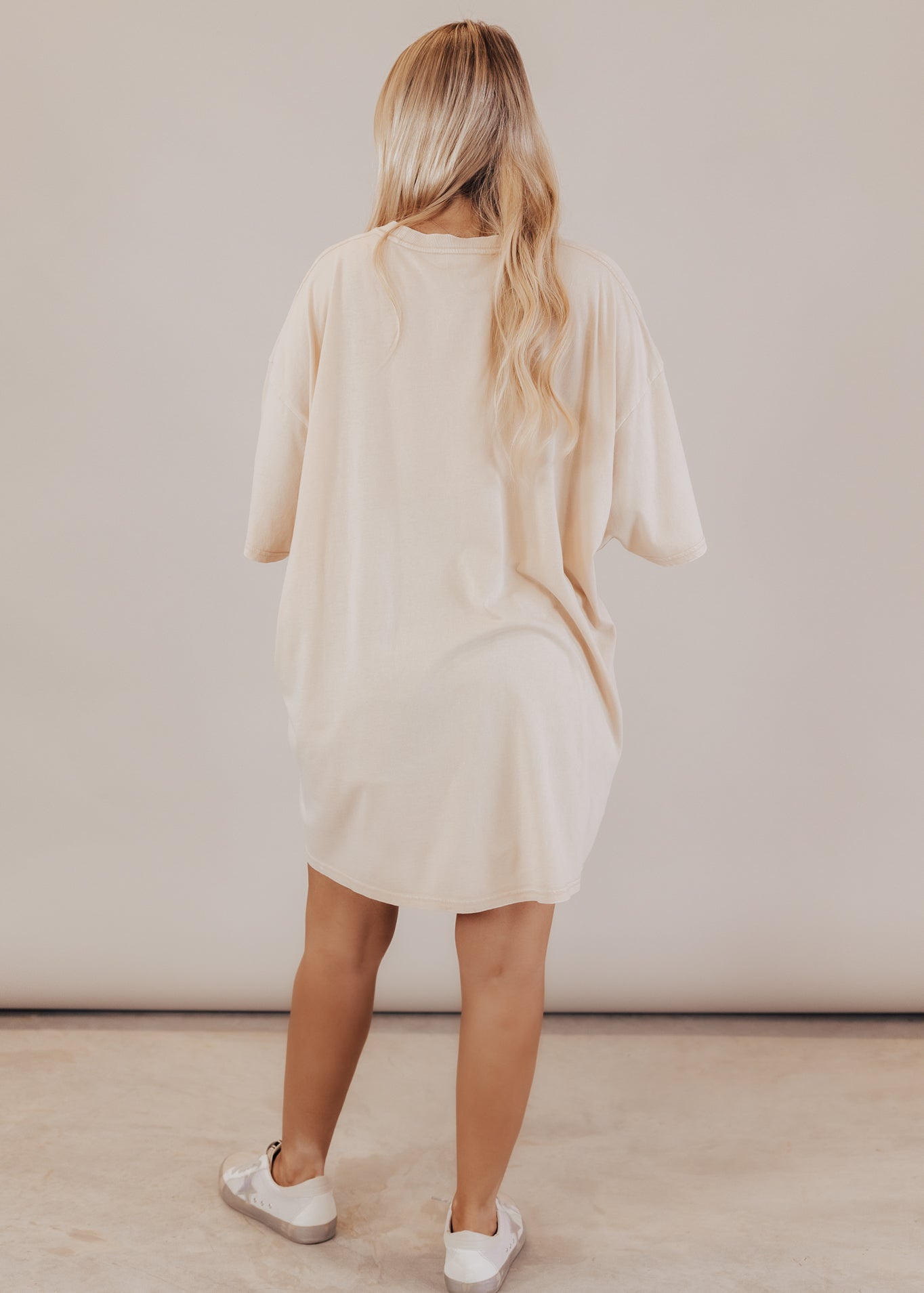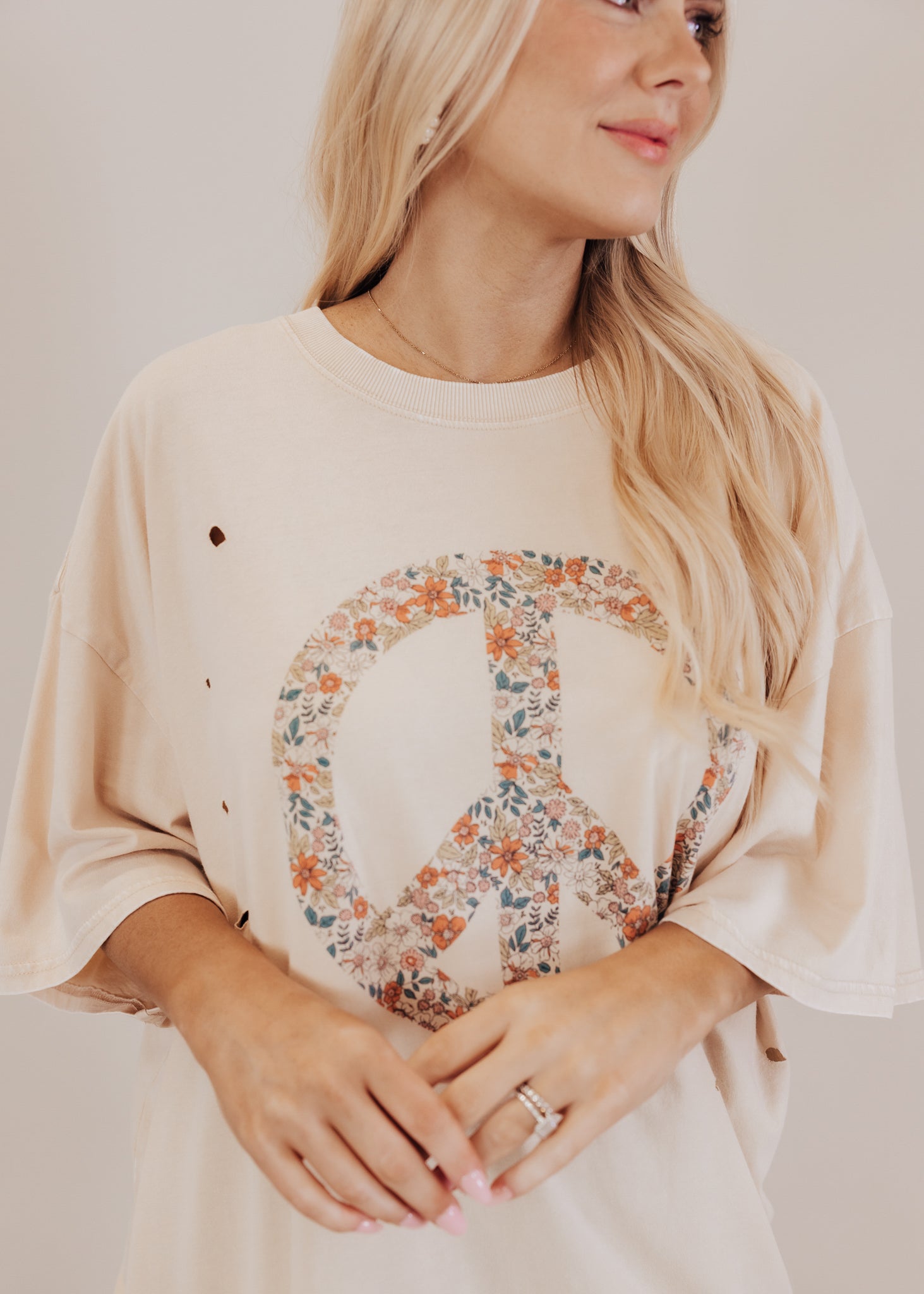 Oversized Distressed Floral Peace Long Top (CAN FIT XL) *SAND