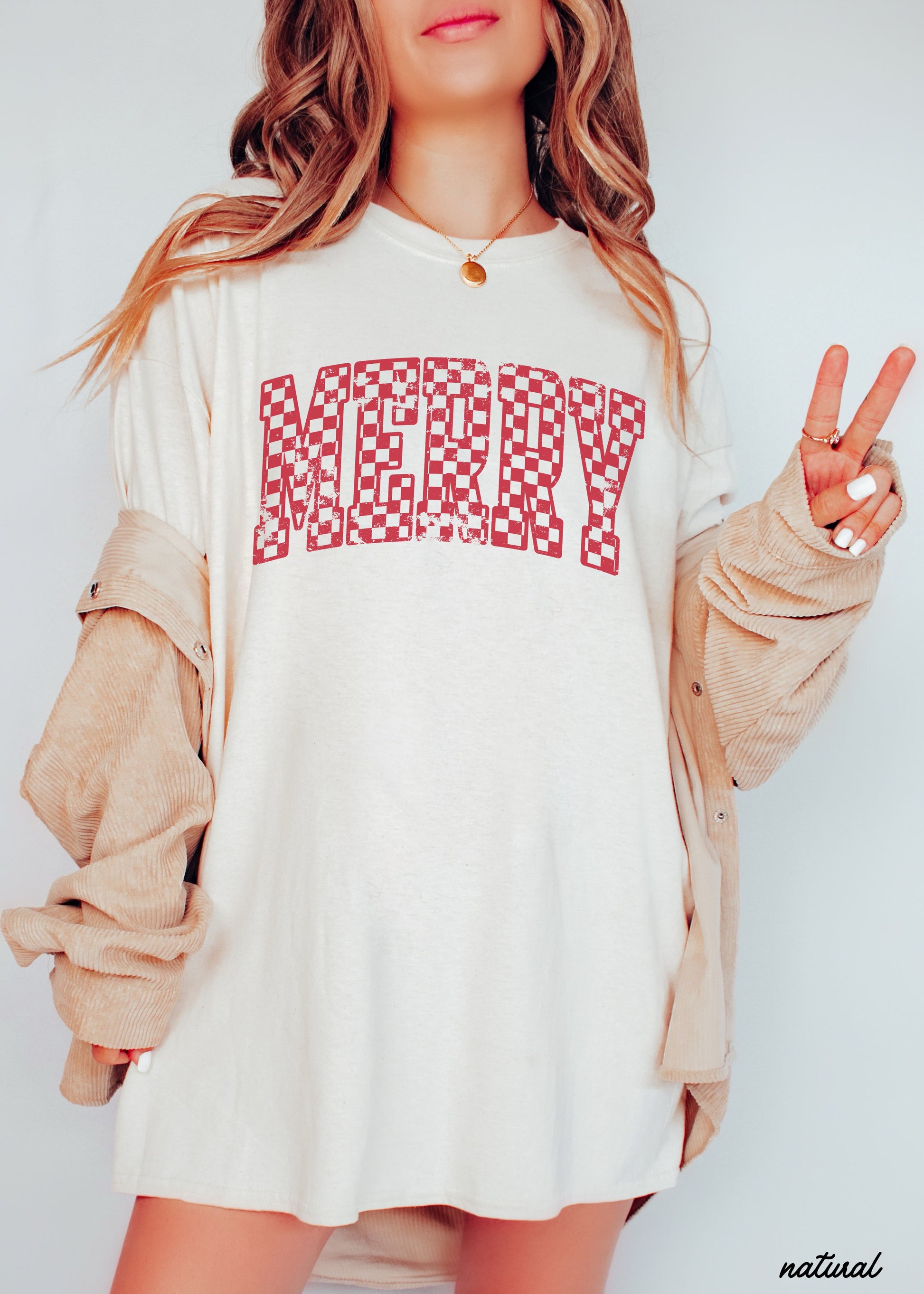 Pre Order: Checkered Merry Tee *4 Colors (S-3X)
