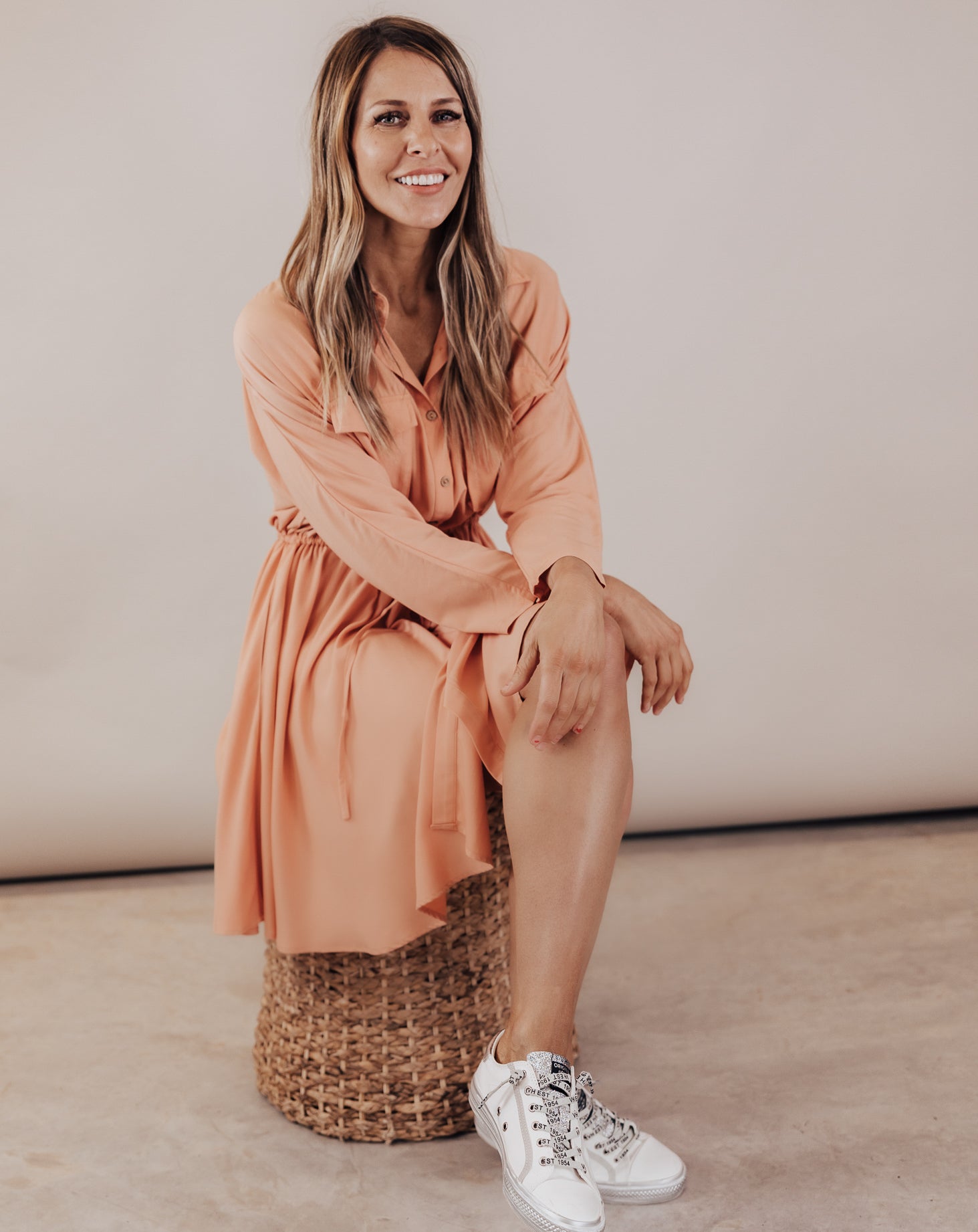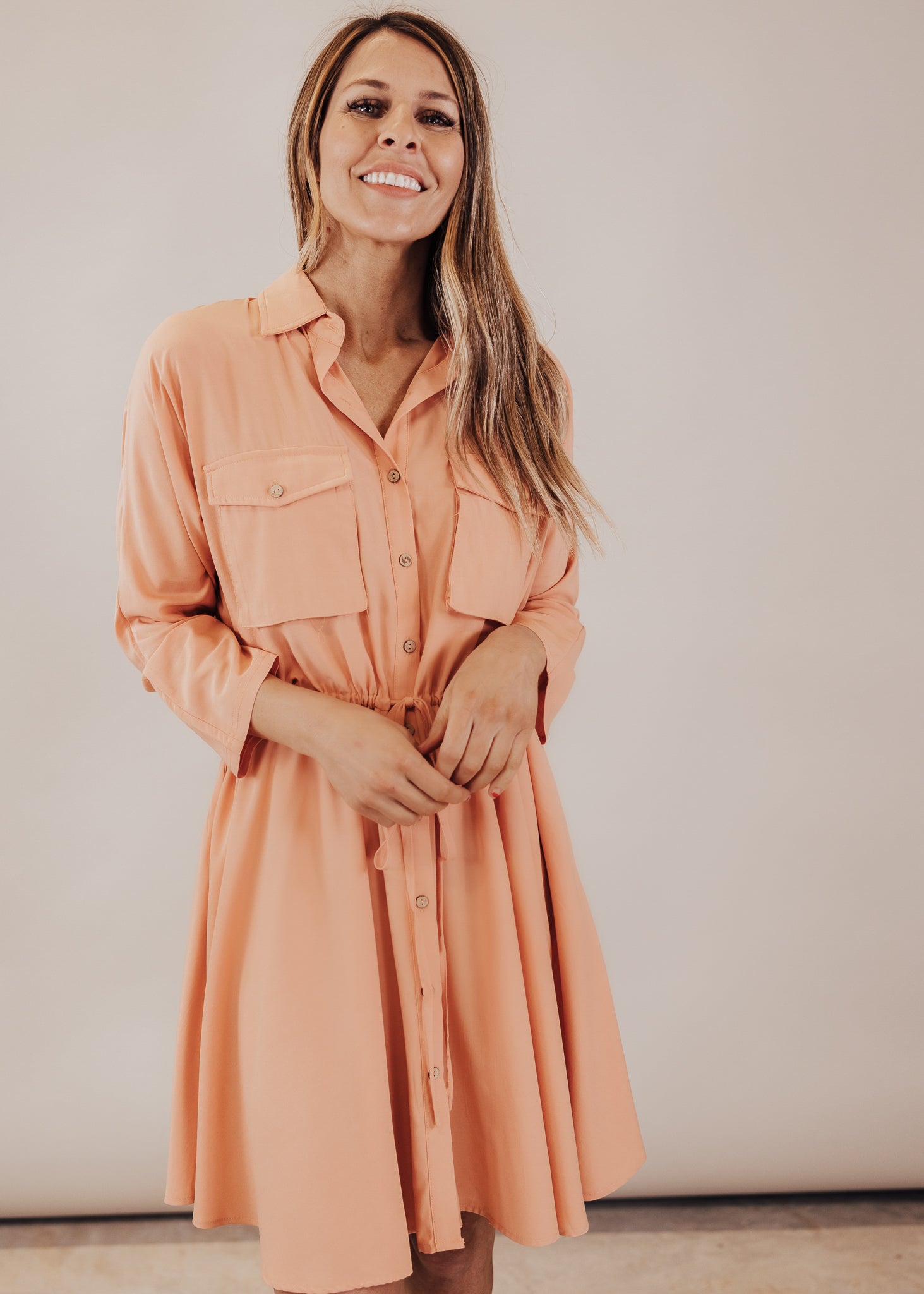 SMALL: Cantaloupe Button Down Dress (CAN FIT XL)