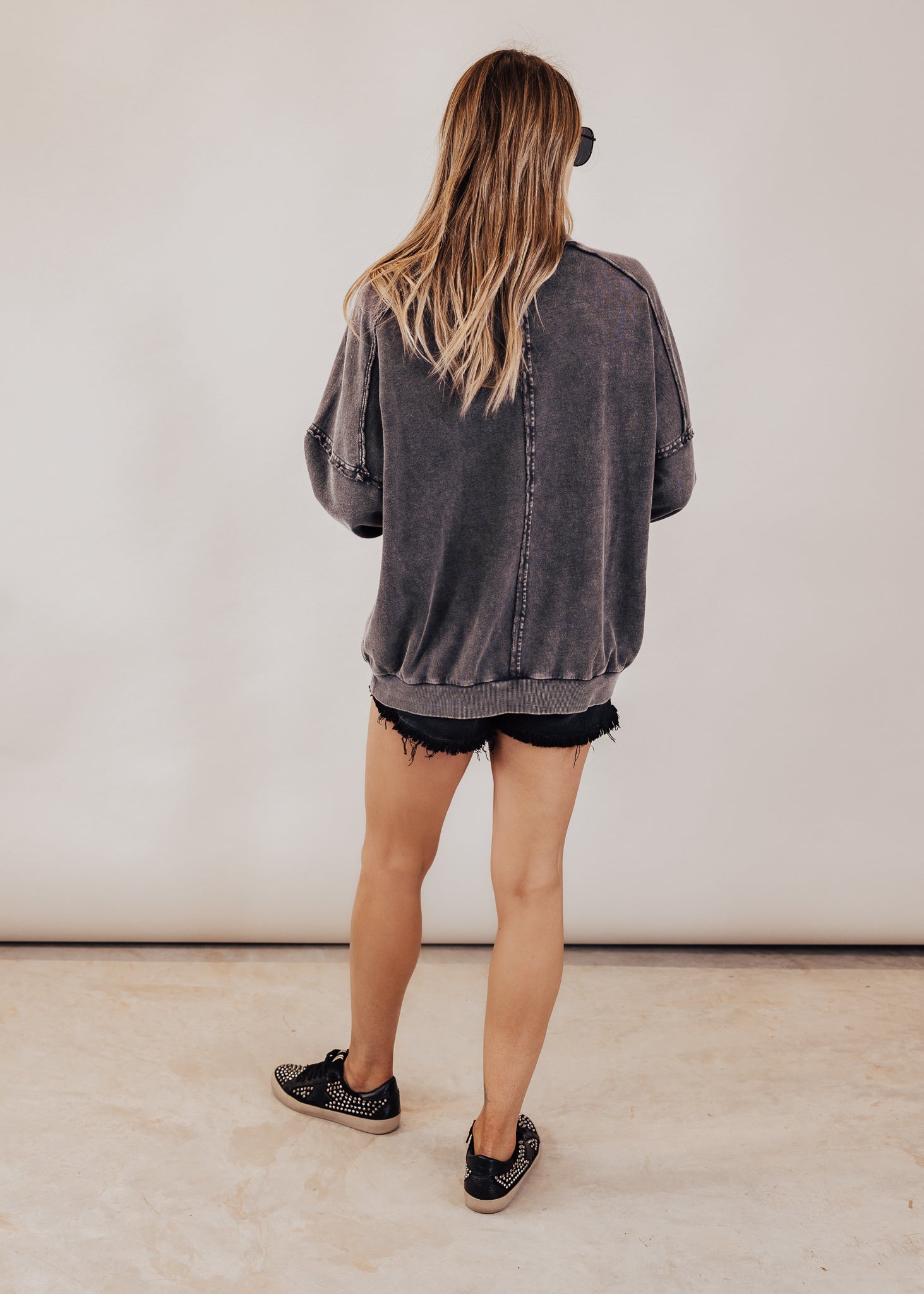 Mineral wash charcoal top. Long sleeve. Bolt detail leopard.
