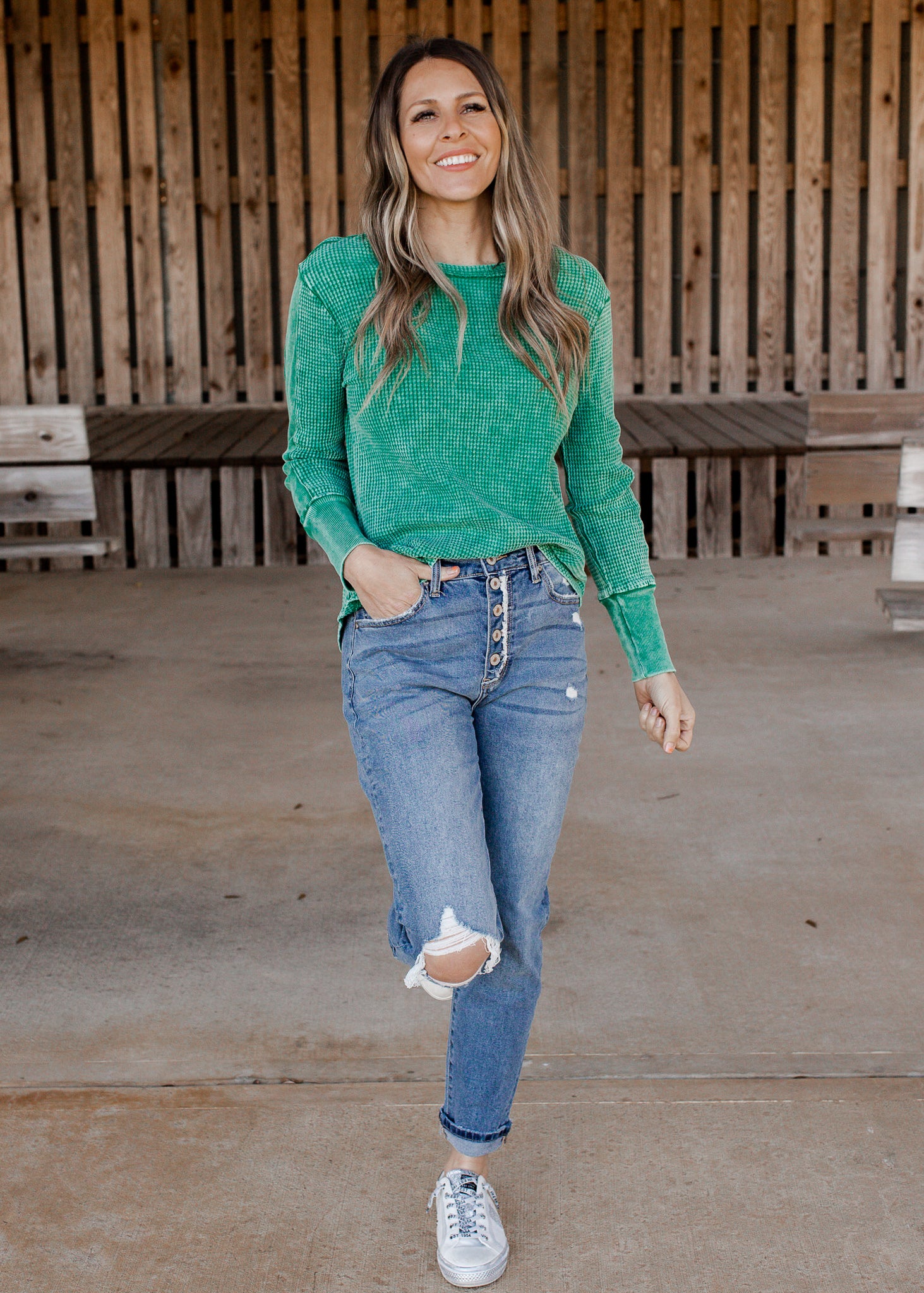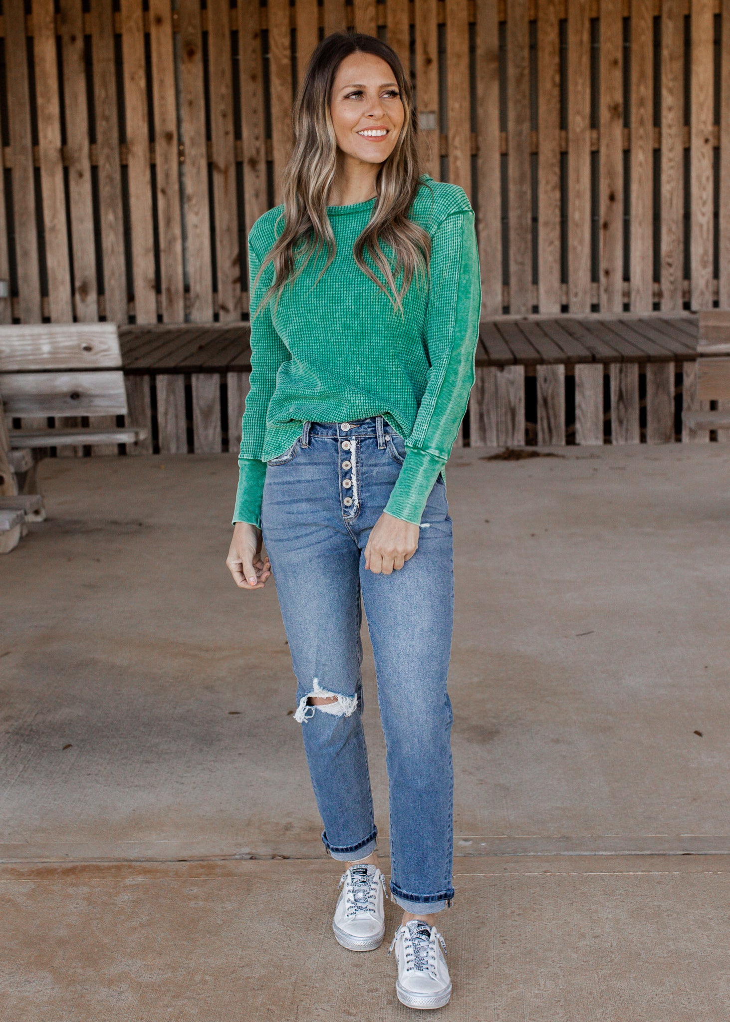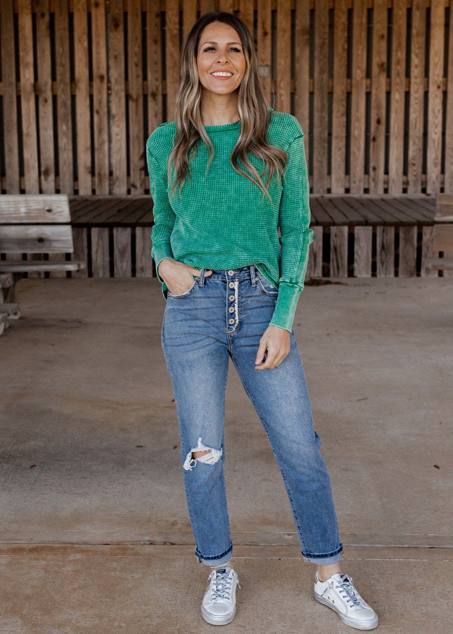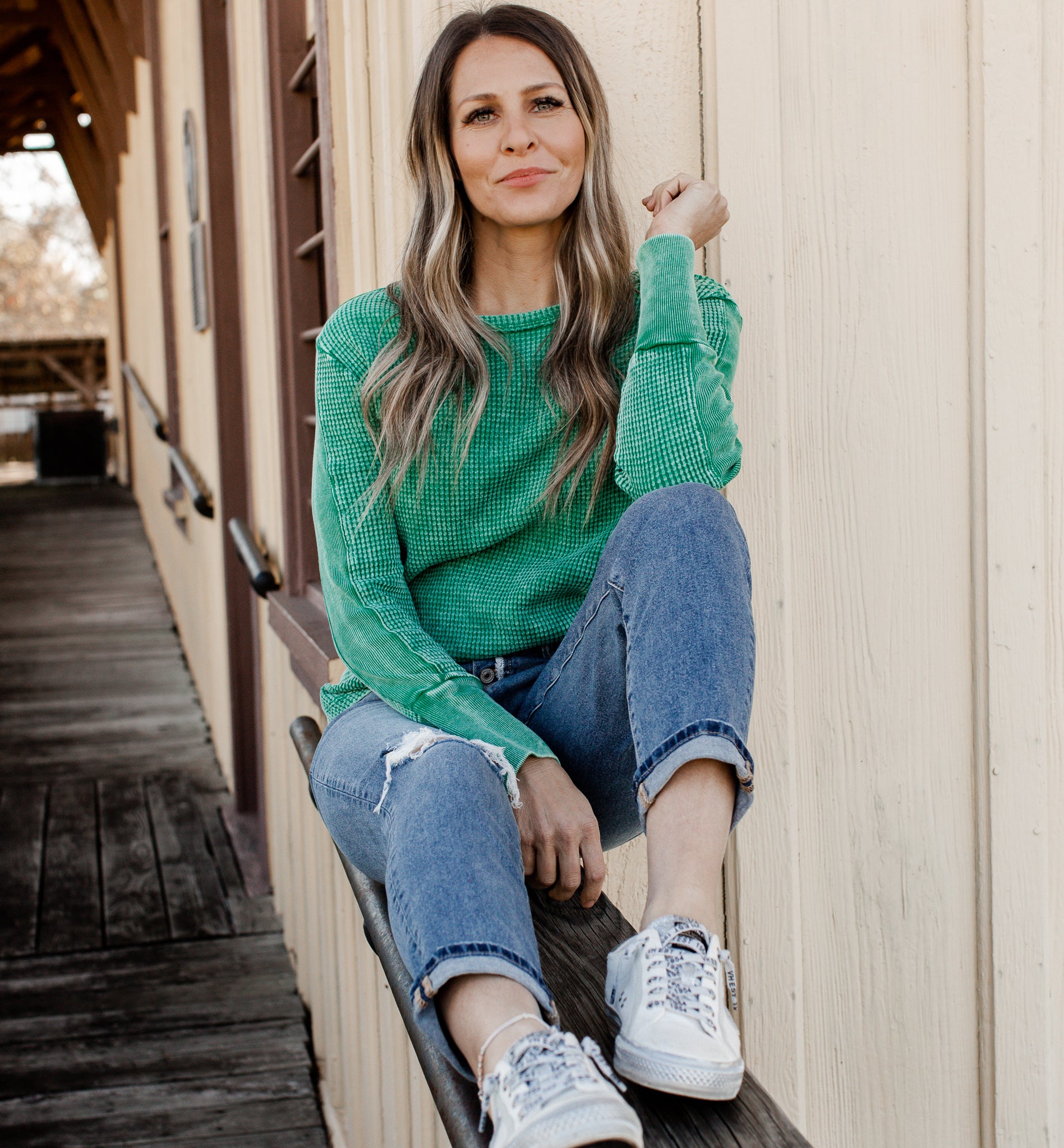 Amanda wears size 5 and is 5'6. Rachel wears a size 7 and is 5'3.