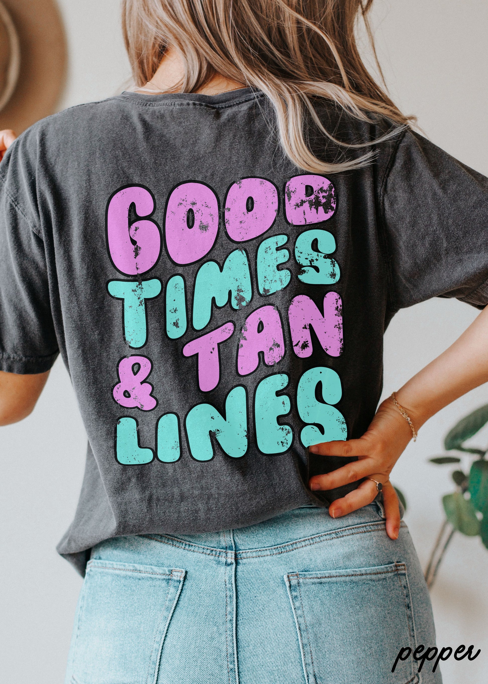 *Good Times Tan Lines BACK Print Tee *6 Colors (S-3X)