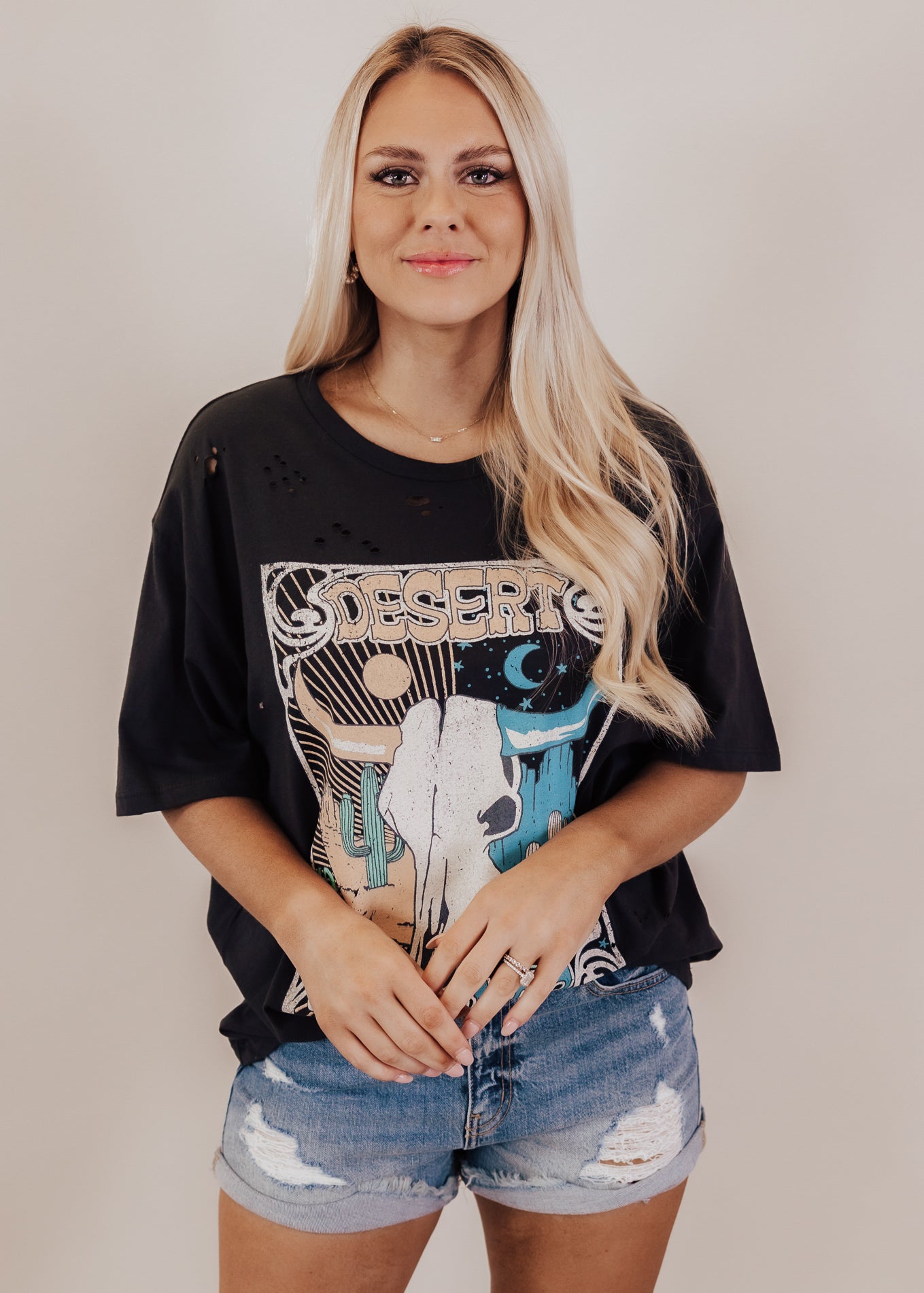 Distressed. Cuffed hem, sewn on the sides. Fray detail on bottom.