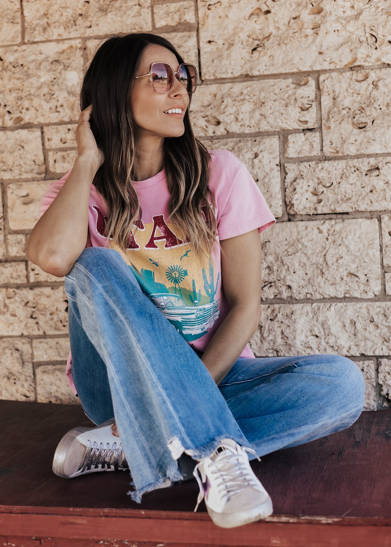 Amanda wears a size 5 and is 5'6. Rachel wears a size 7 and is 5'3. Taylor wears a size 3 and is 5'1.