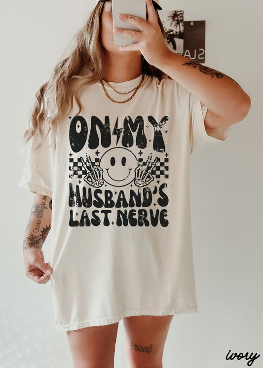 Husbands Last Nerve FRONT PRINT Tee *8 Colors (S-3X)