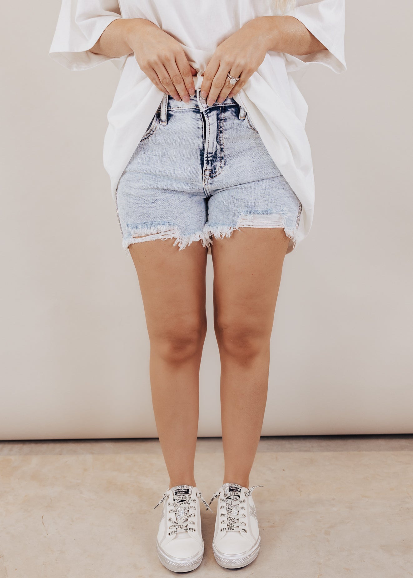 Acid wash. Rhinestone detail on sides. Distressed. High rise.