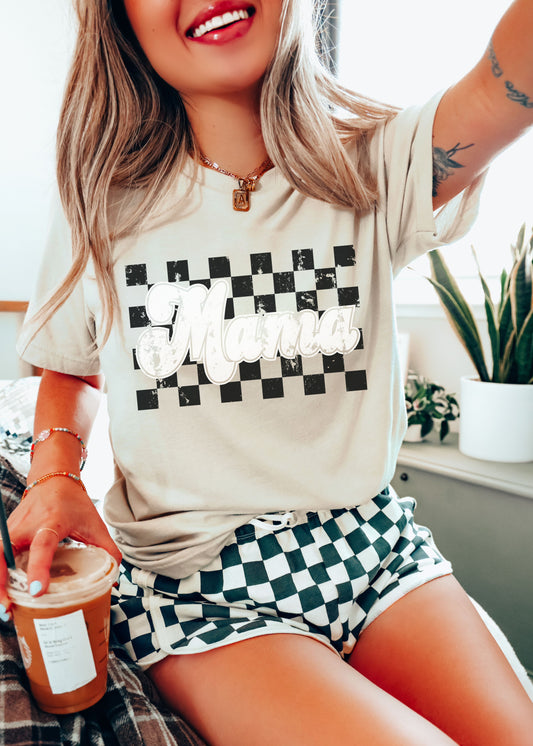Pre Order: Mama Checkered Tee *Natural (S-3X)
