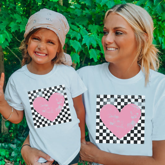YOUTH Pre-Order: Checkered Heart Sweatshirt *RED (XS-XL)