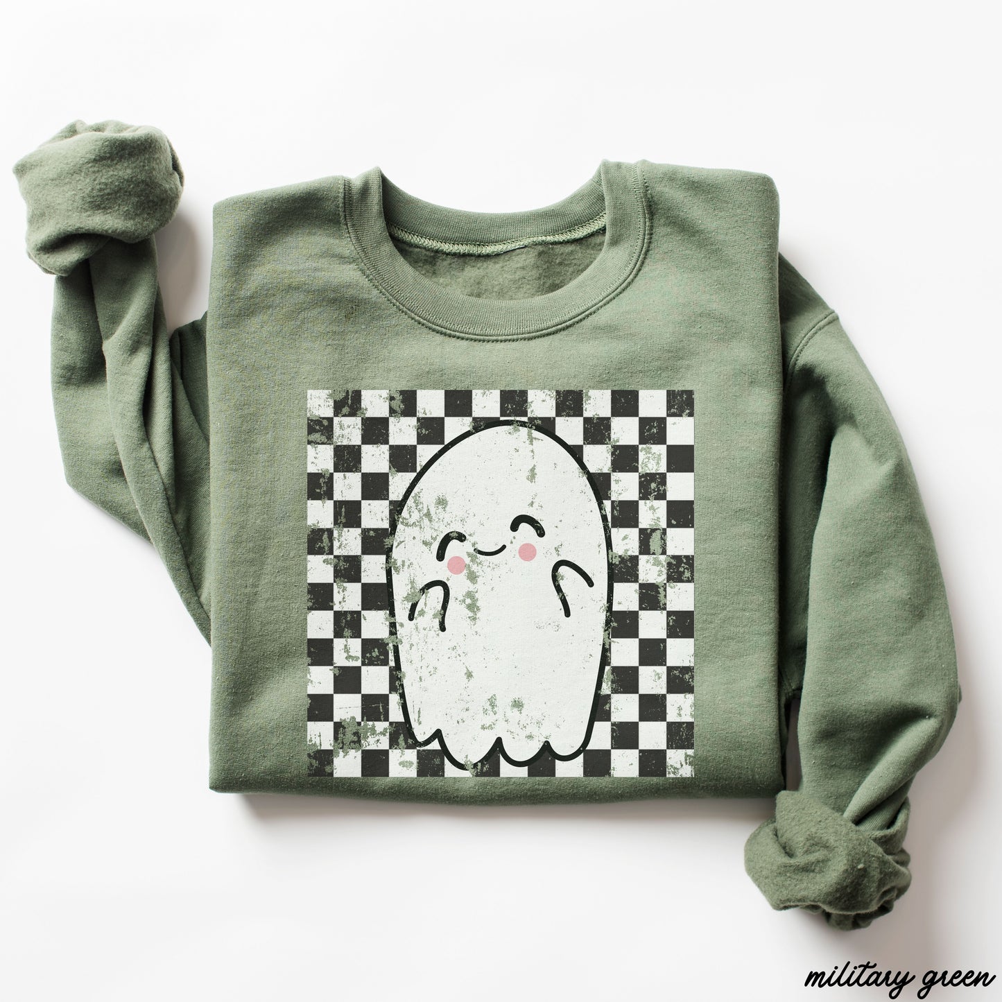 Checkered Ghost Sweatshirt *4 Colors (S-3X)