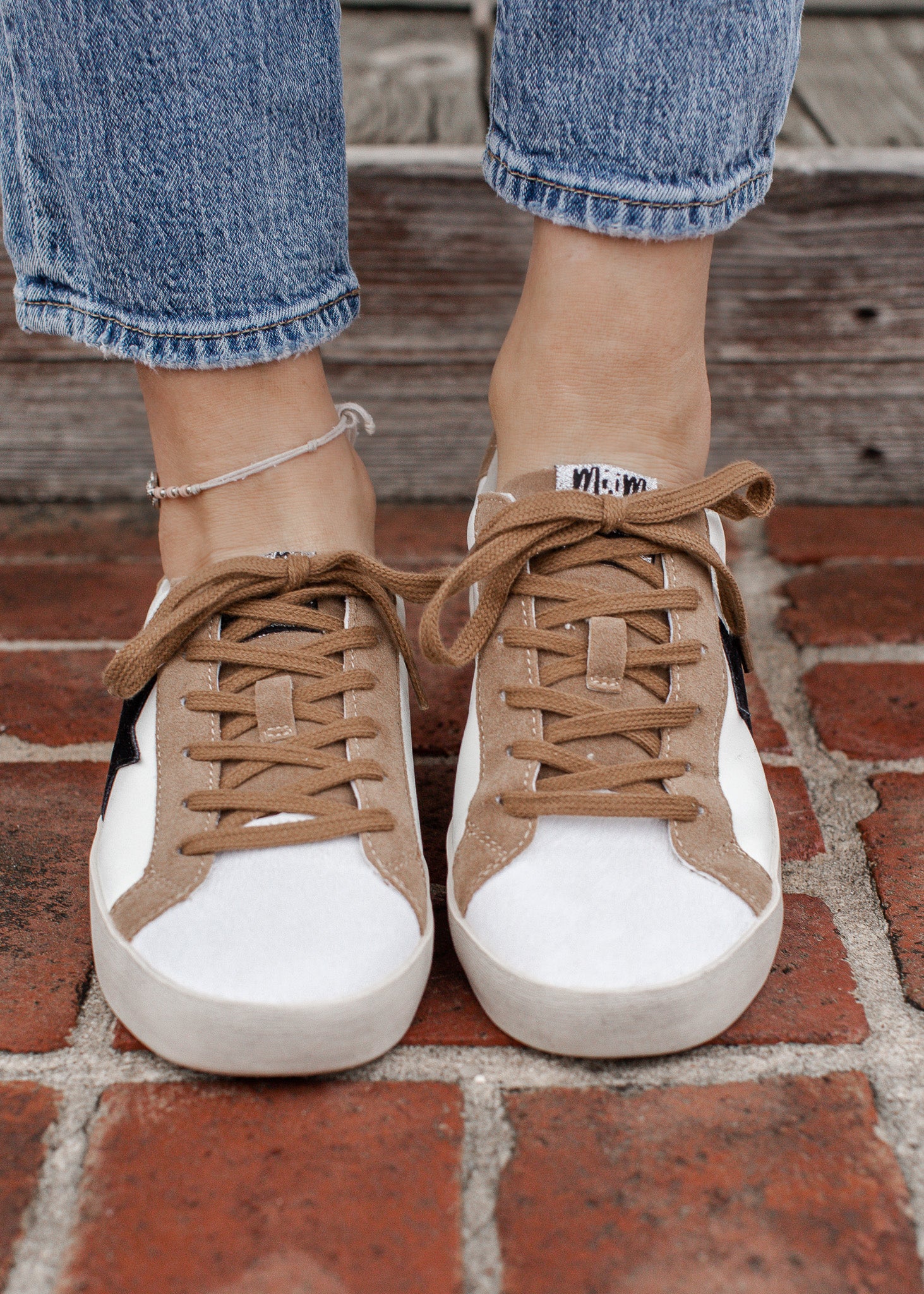 These have a hair detail on the top of shoe. The sides are a faux leather and the Taupe color is faux suede. Black star detail