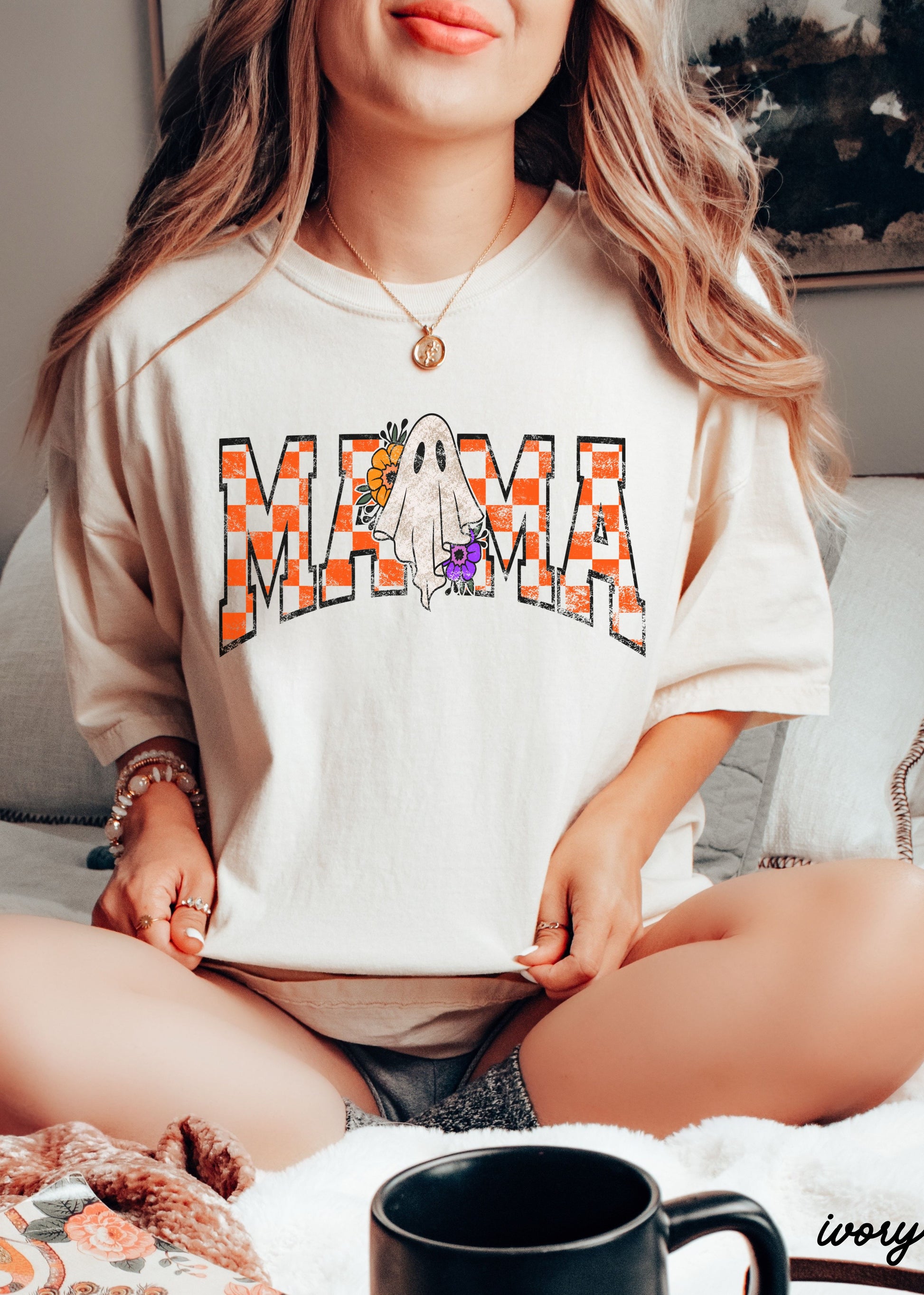 *Checkered Mama Ghost Tee *7 Colors (S-3X)