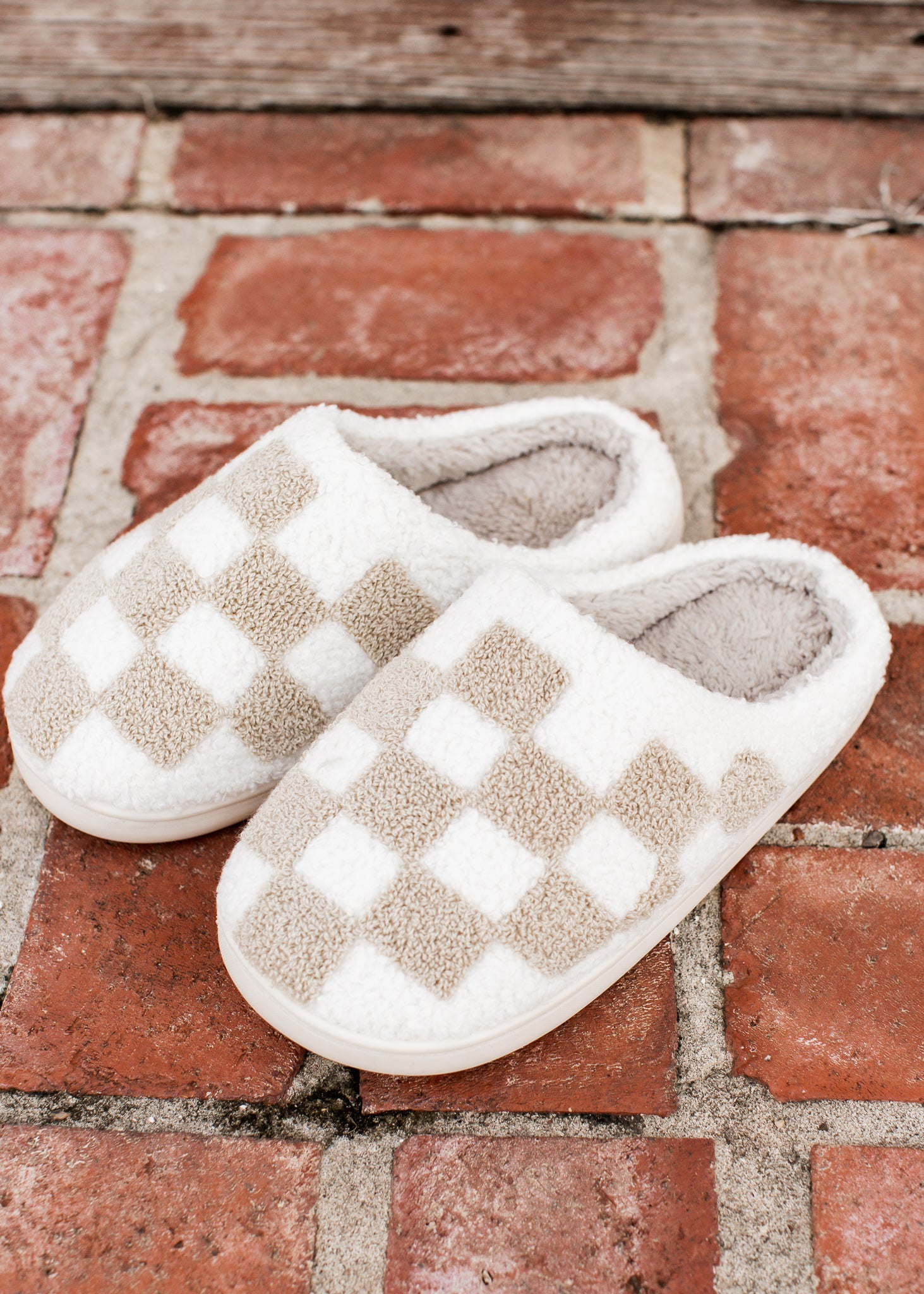 Checkered Slippers (S-XL) *TAN/OFF WHITE