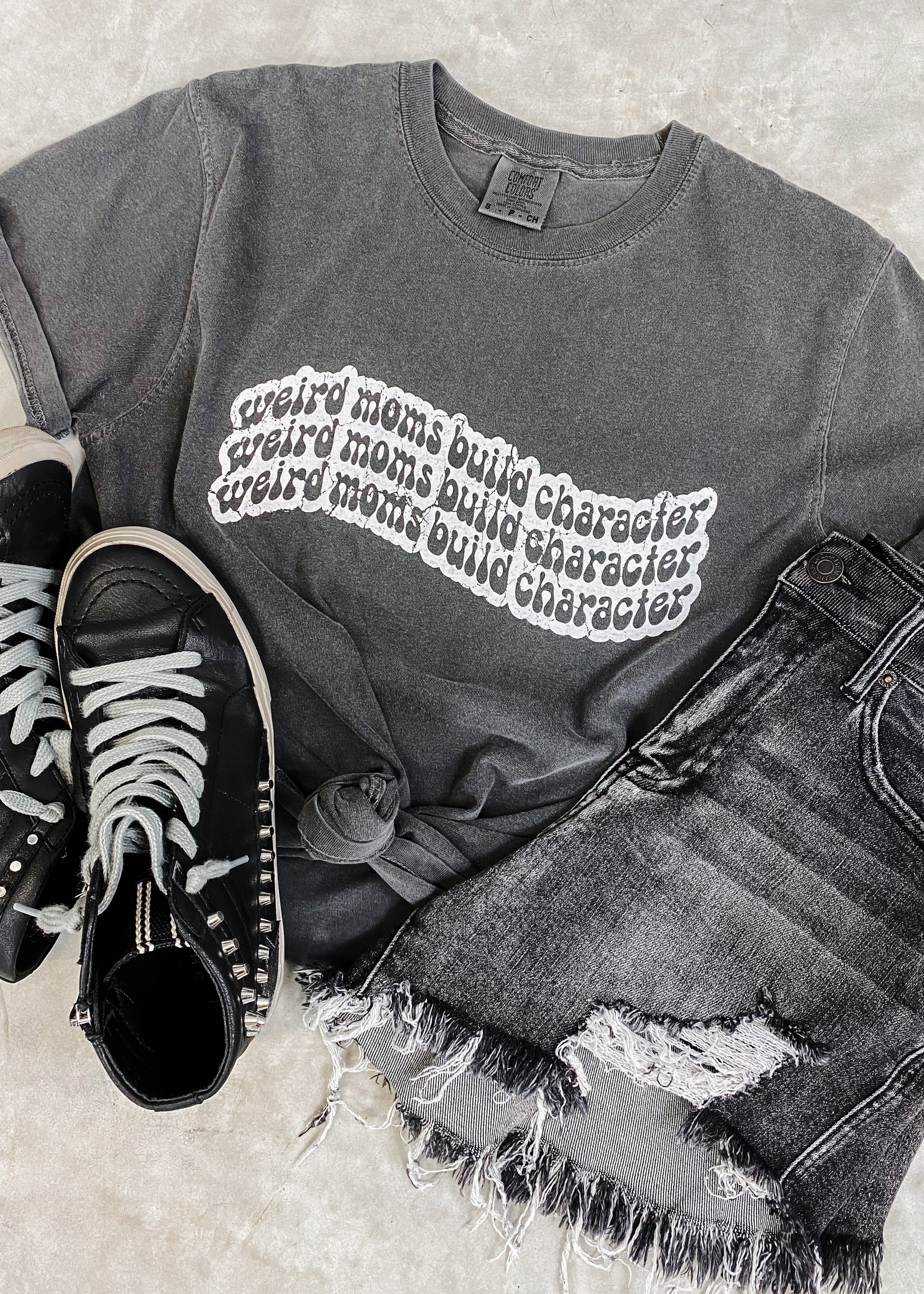 Weird Moms Build Character. Screen printed on a Pepper Comfort Colors Tee with White Ink.