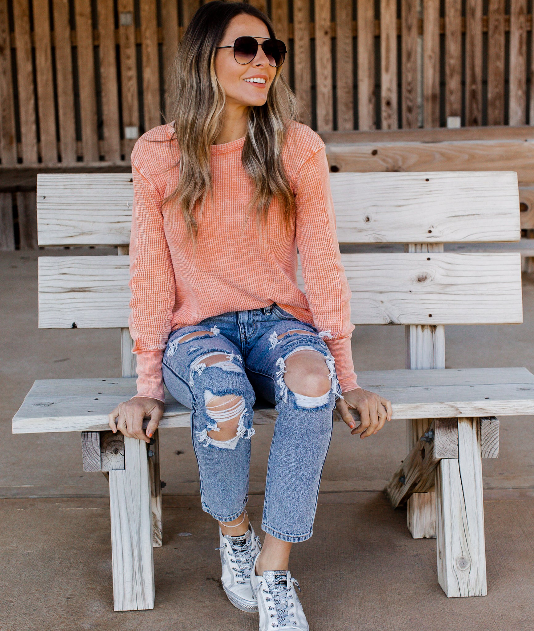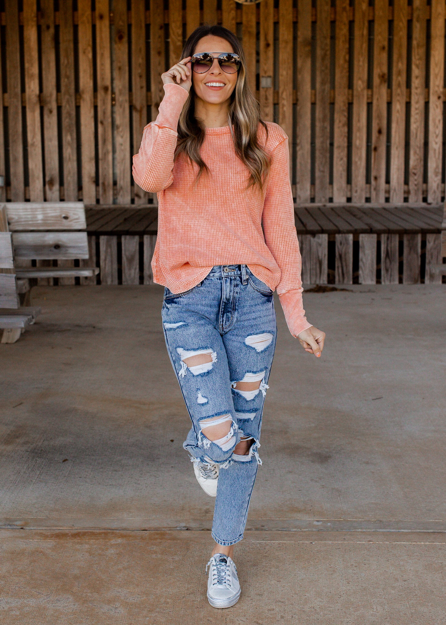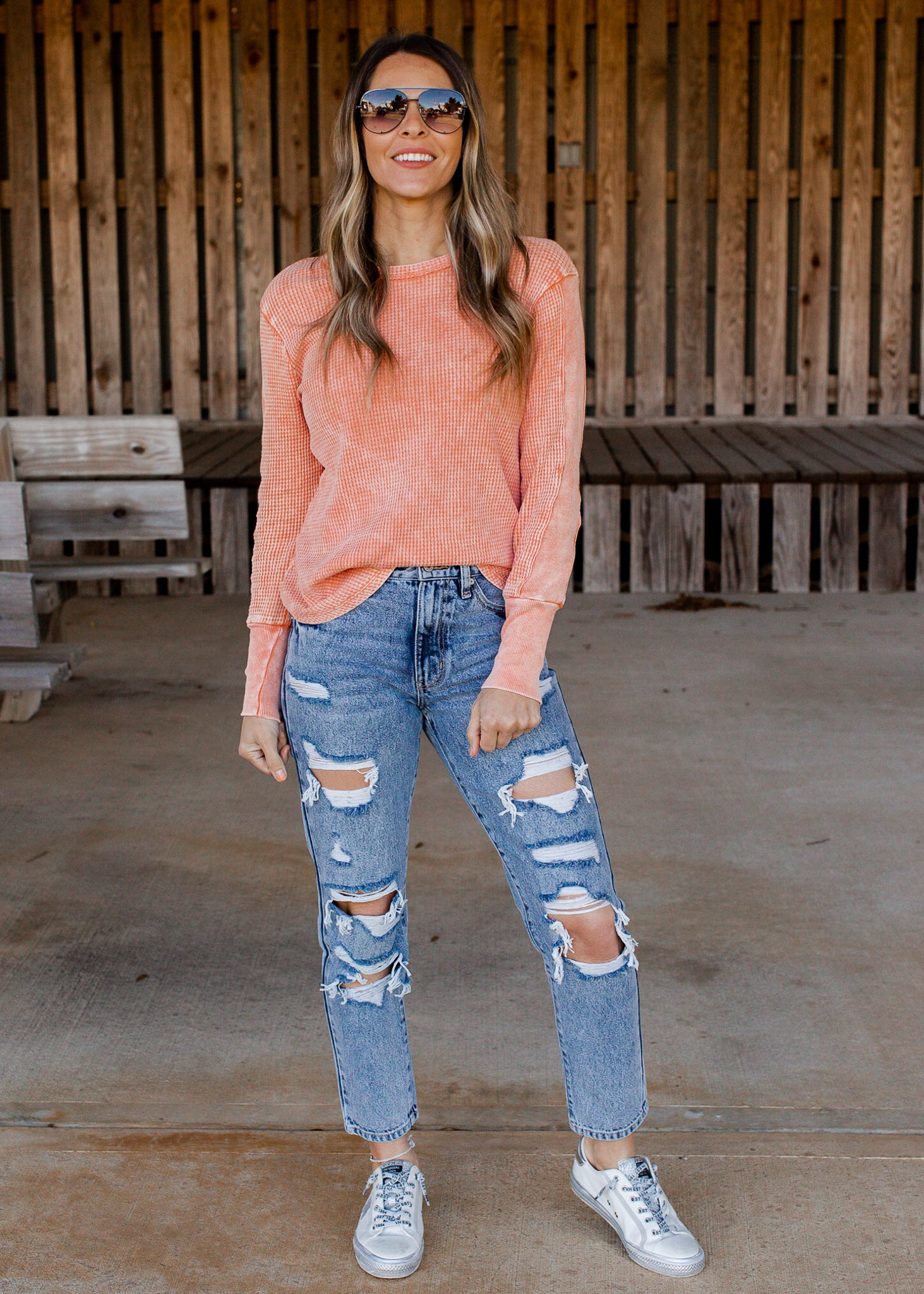 Distressed acid wash.