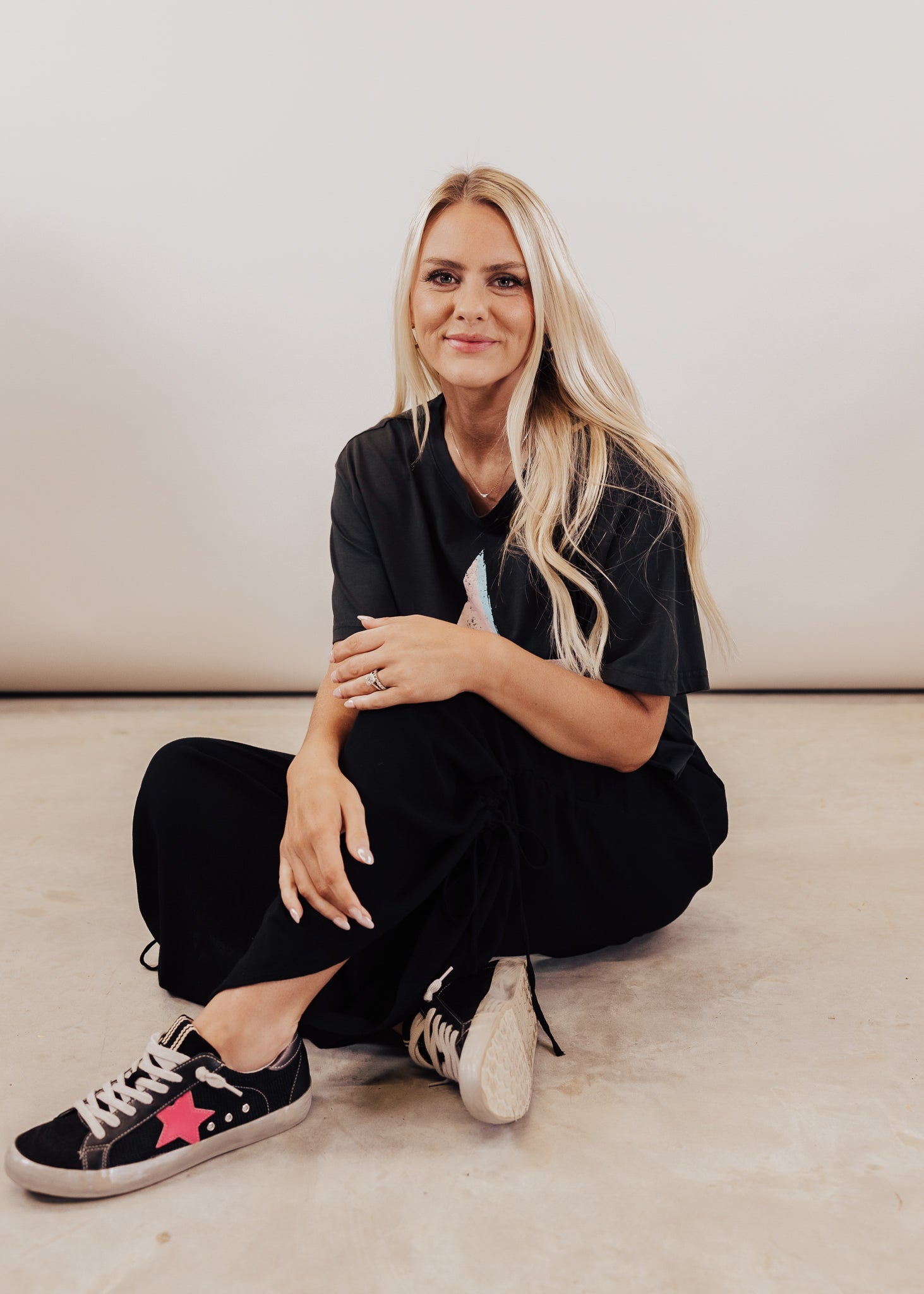 Amanda wears a small and is 5'6. Taylor wears a small and is 5'1. Rachel wears a medium and is 5'3.