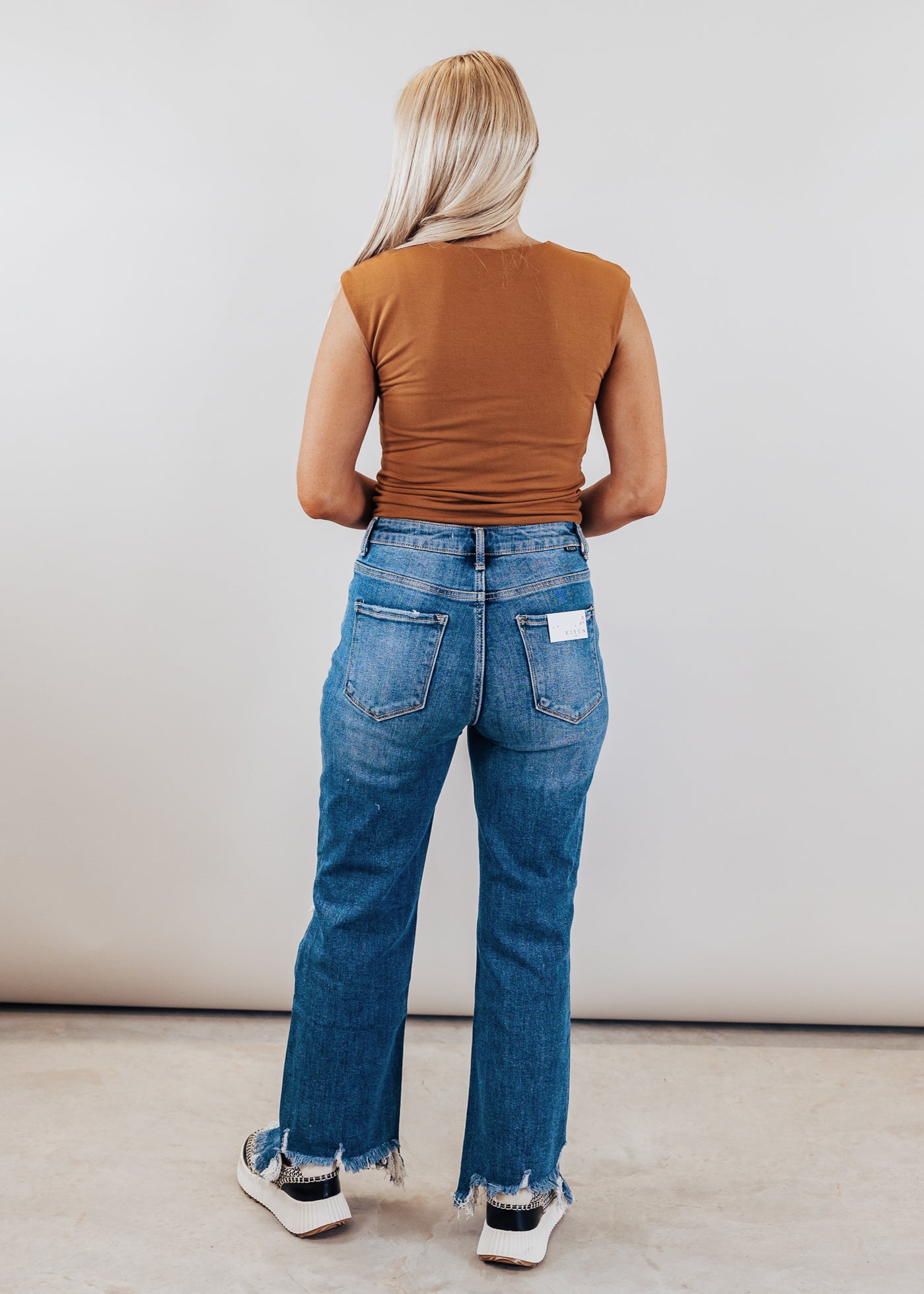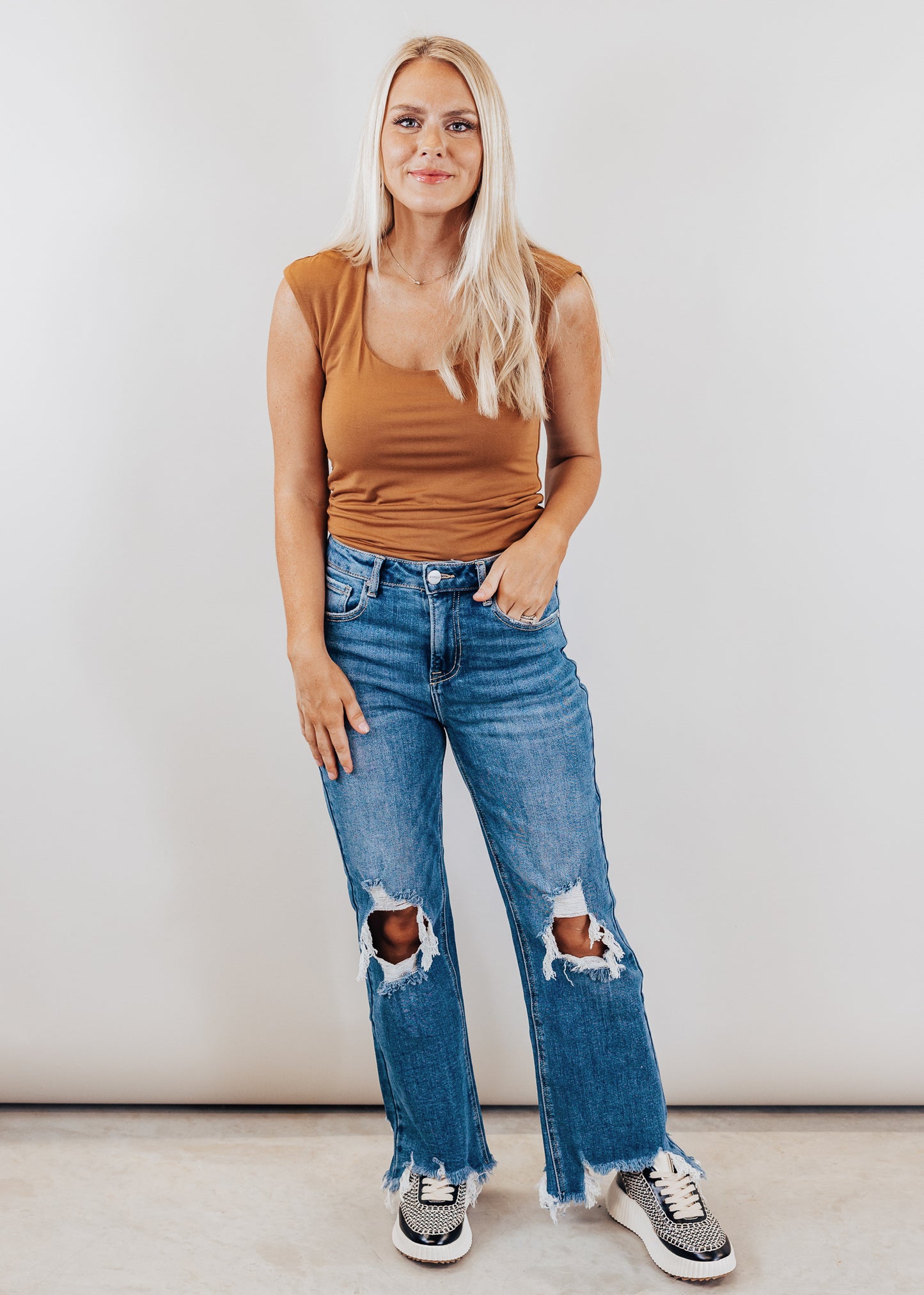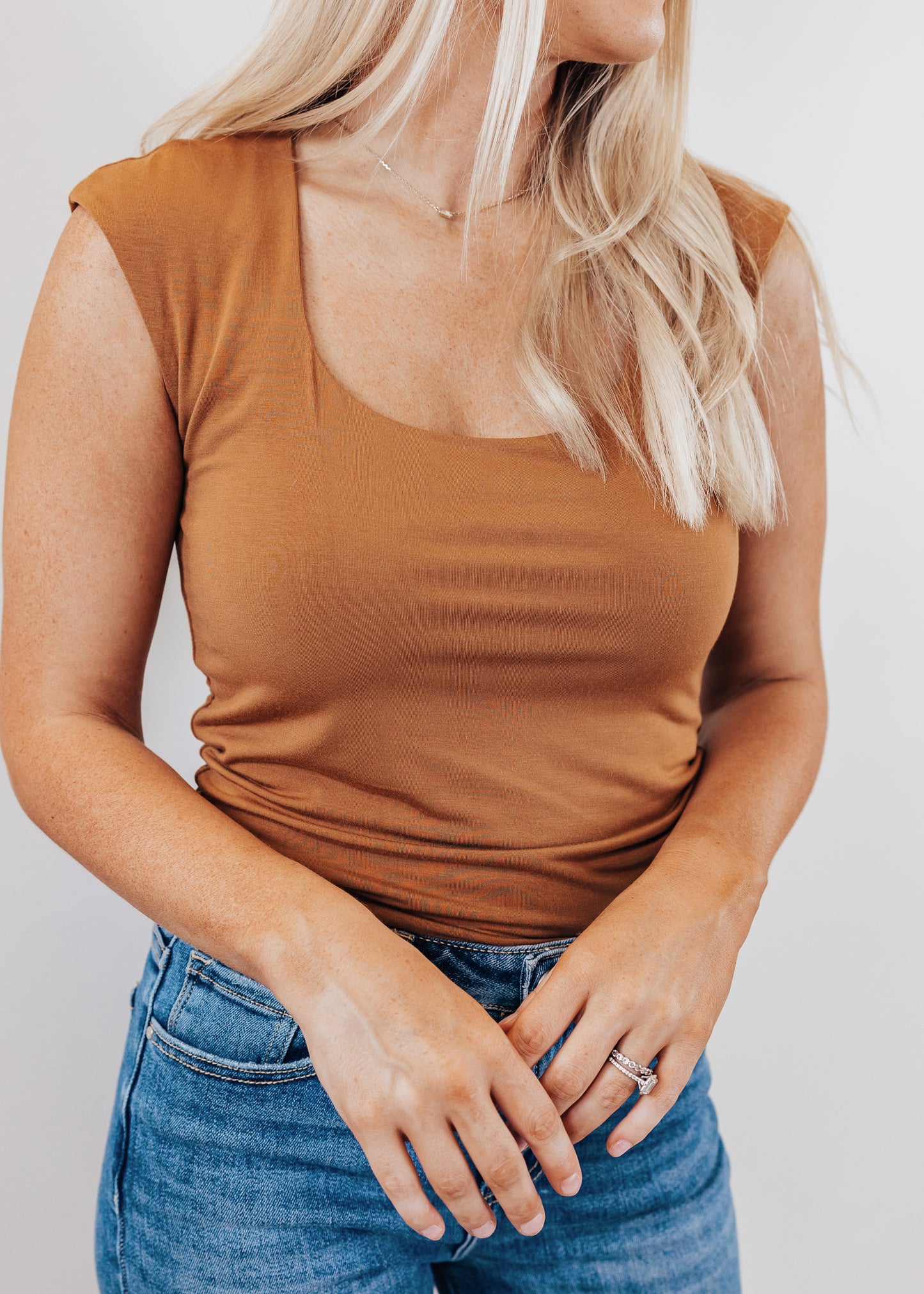 Scoop neck. Crop fit. Fitted. Stretchy.