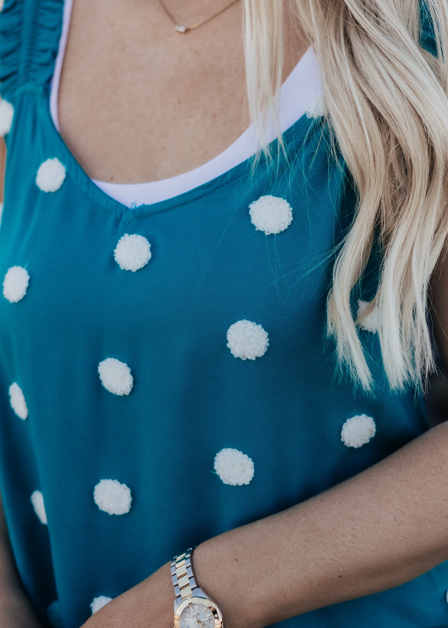 Small: Emerald Dotted Pom Blouse (S-3X)