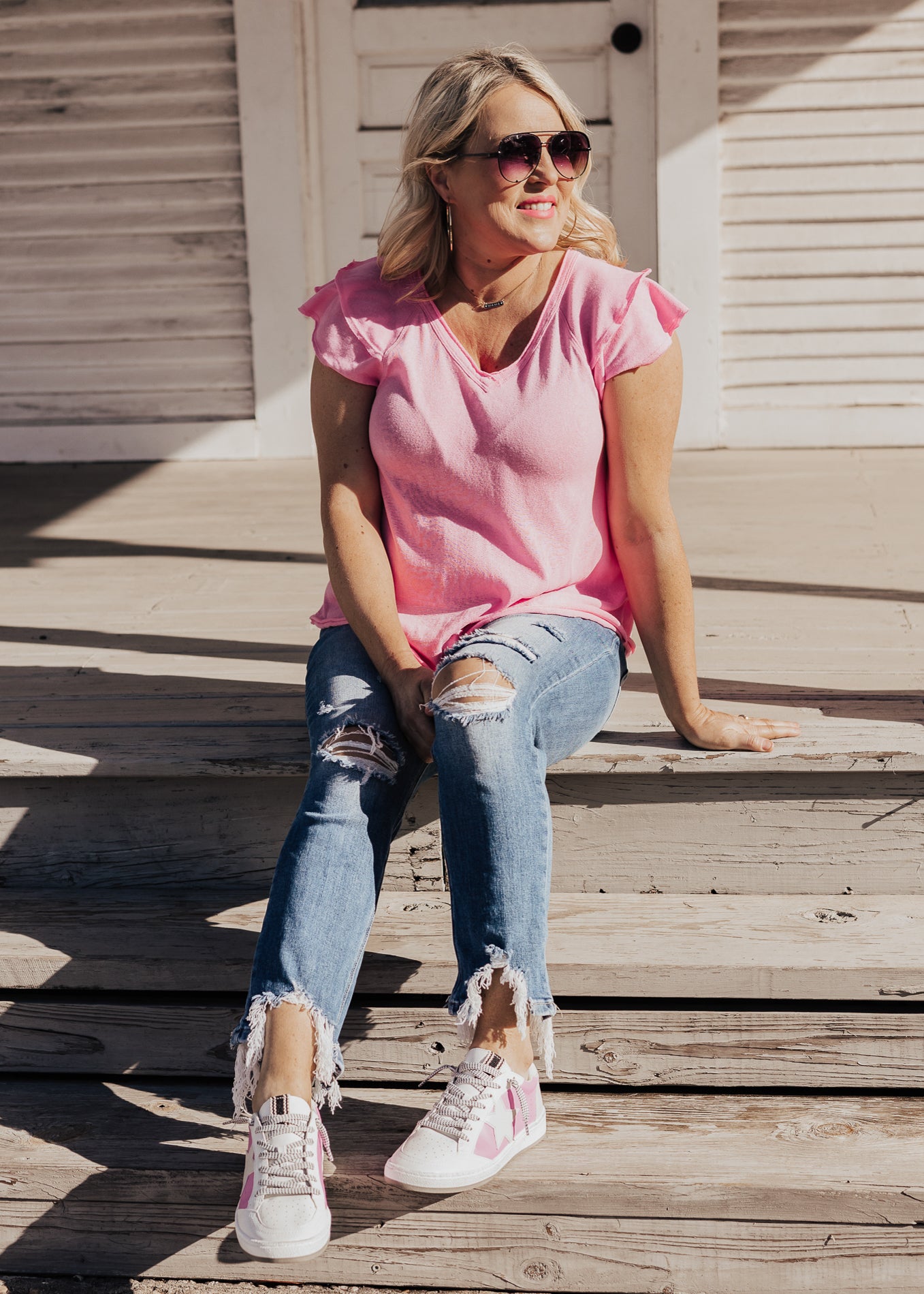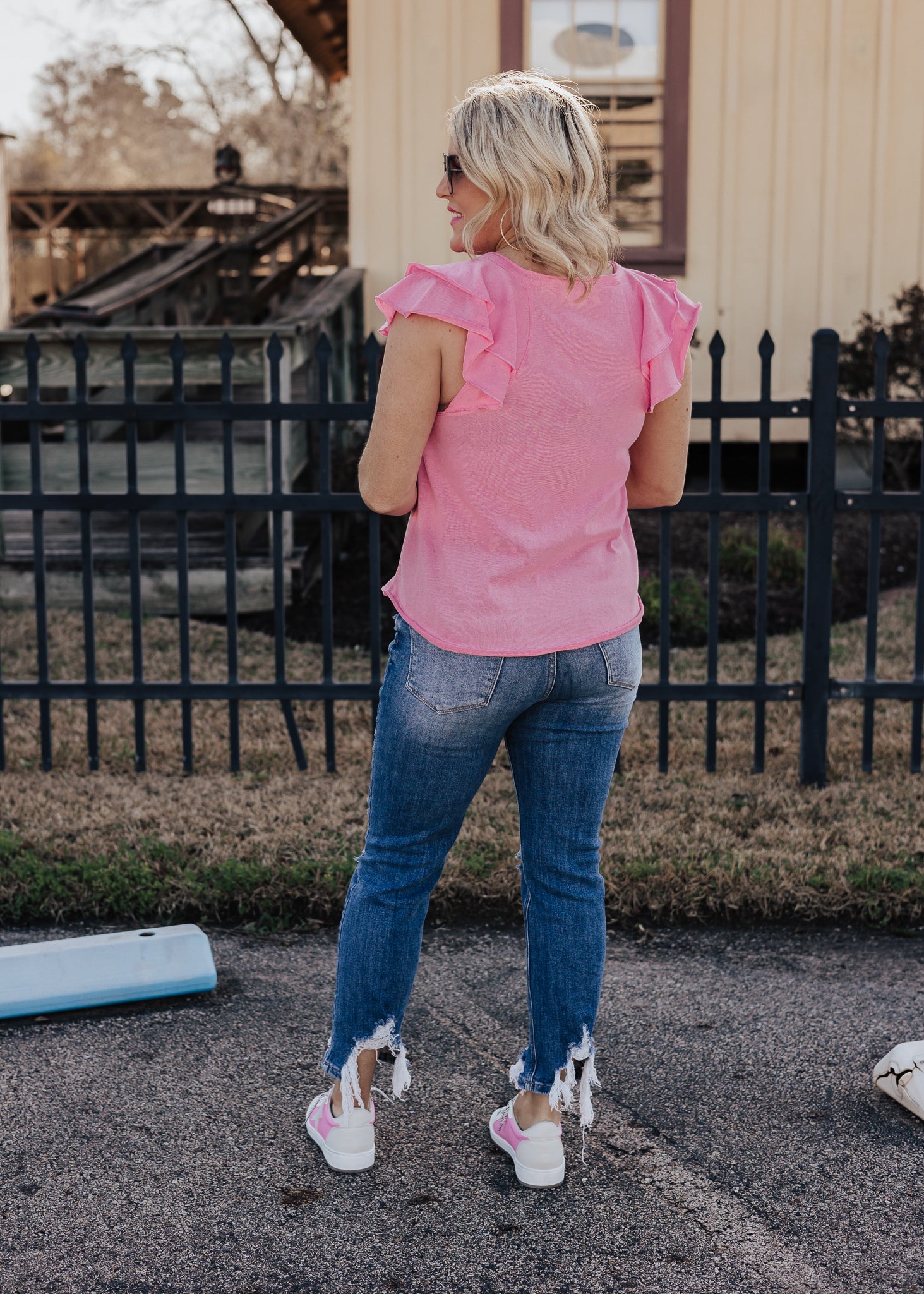 3X: Veronica Flutter Sleeve Top (S-3X) *PINK