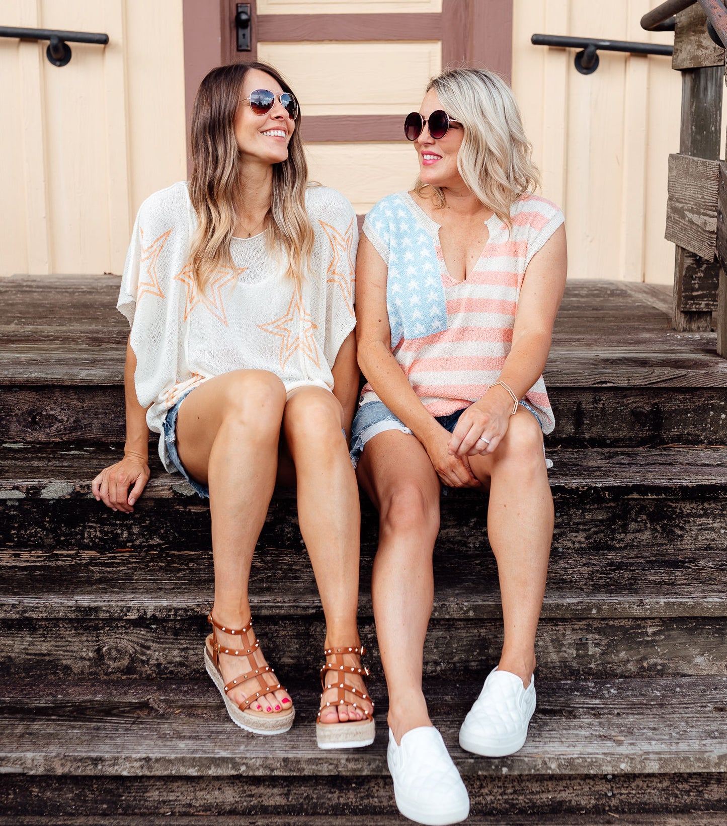 Amanda wears a small. Rachel wears a large.