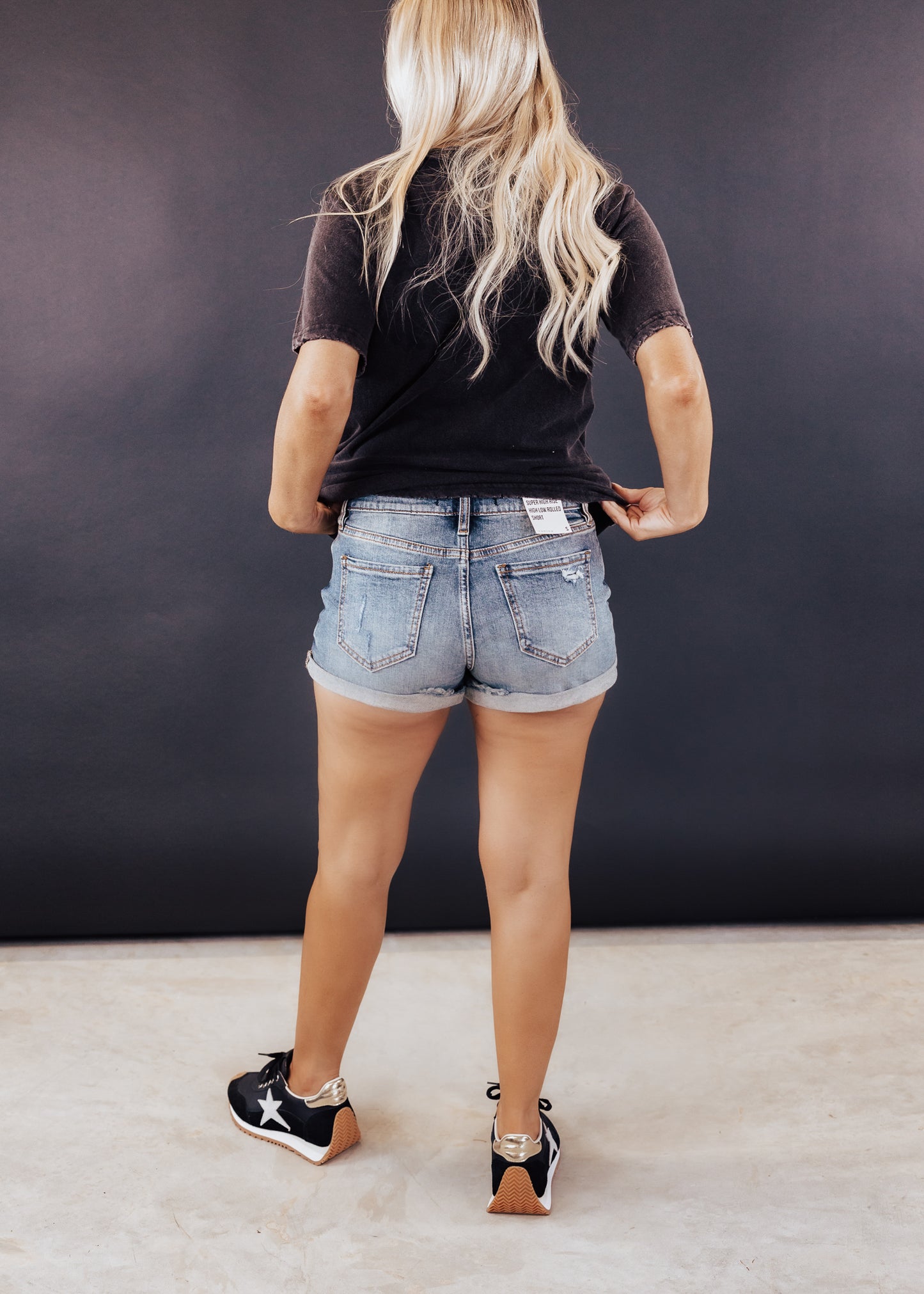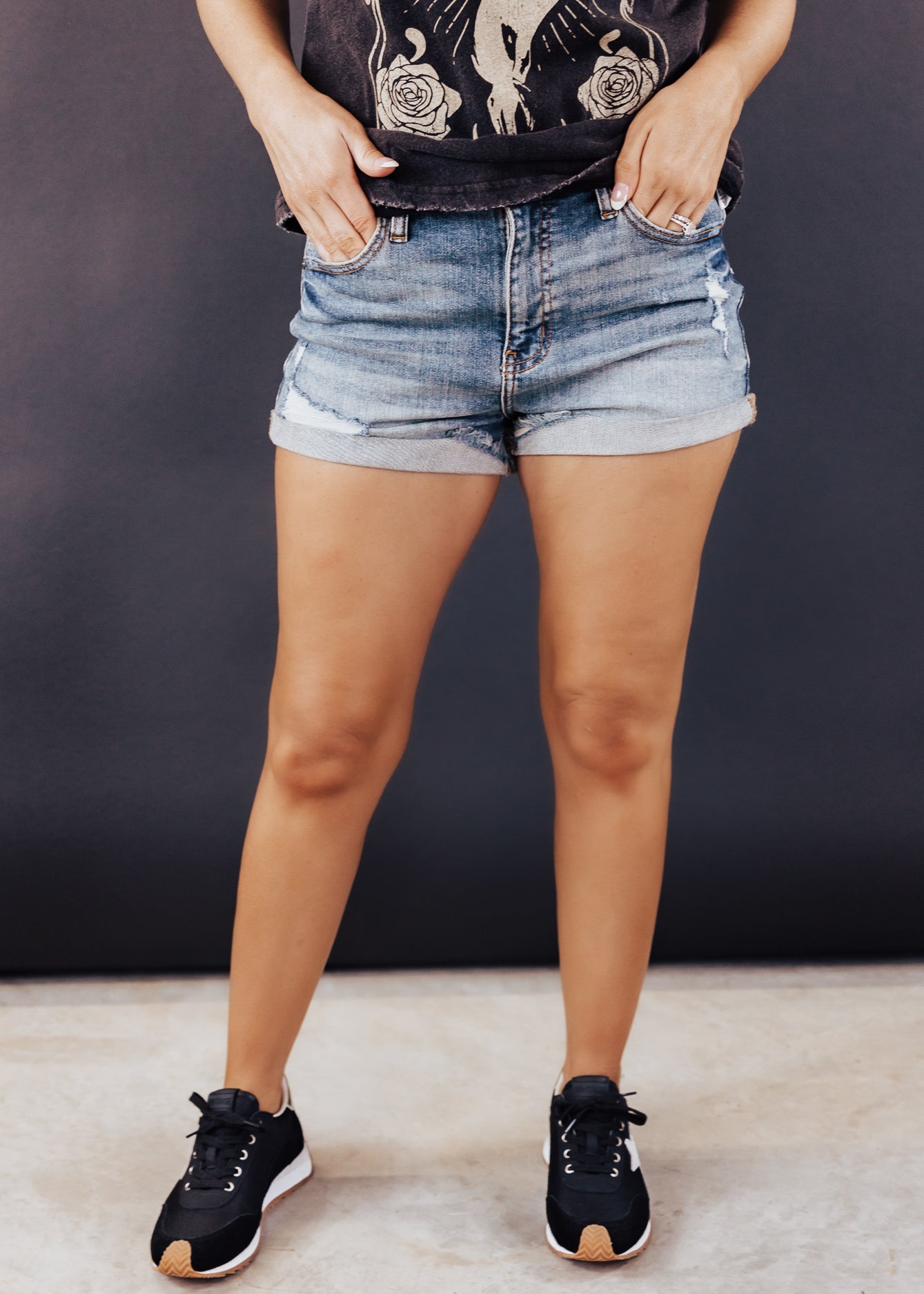 Amanda wears a small and is 5'6. Taylor wears a small and is 5'1. Rachel wears a medium and is 5'3.