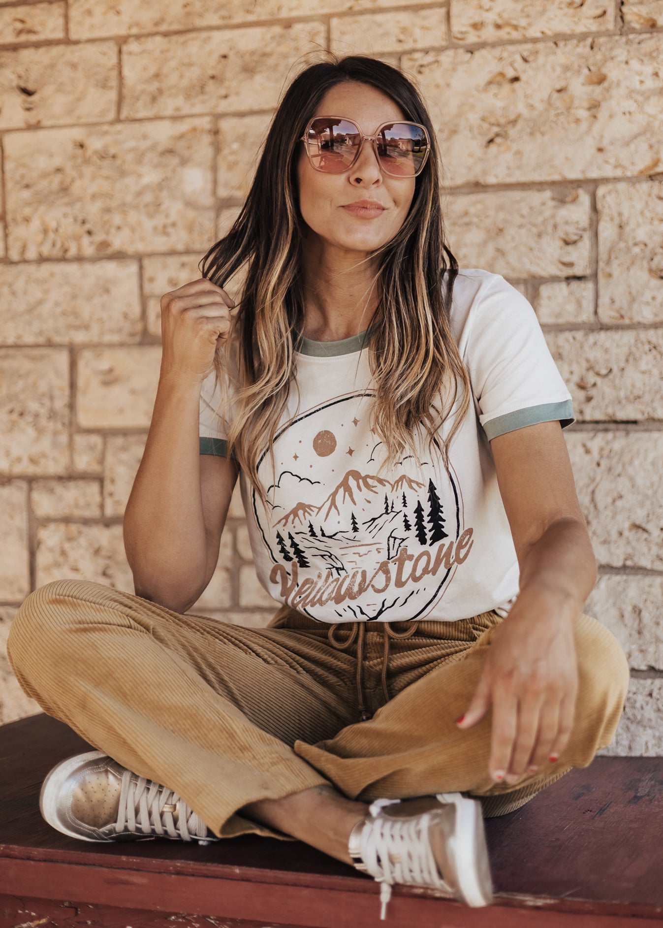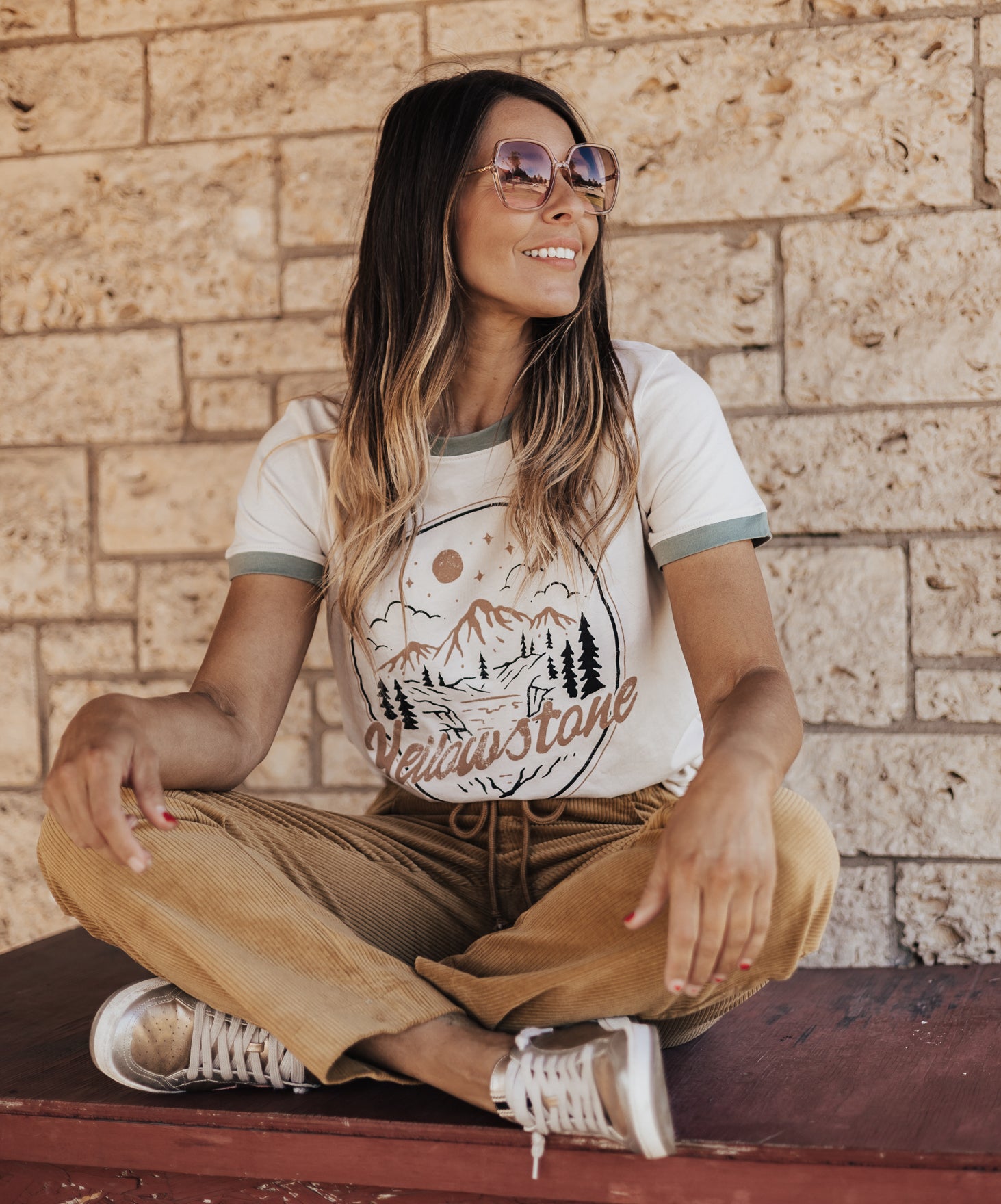 Corduroy pants. Draw string is functional. Ruffle top detail. Stretchy waist band.