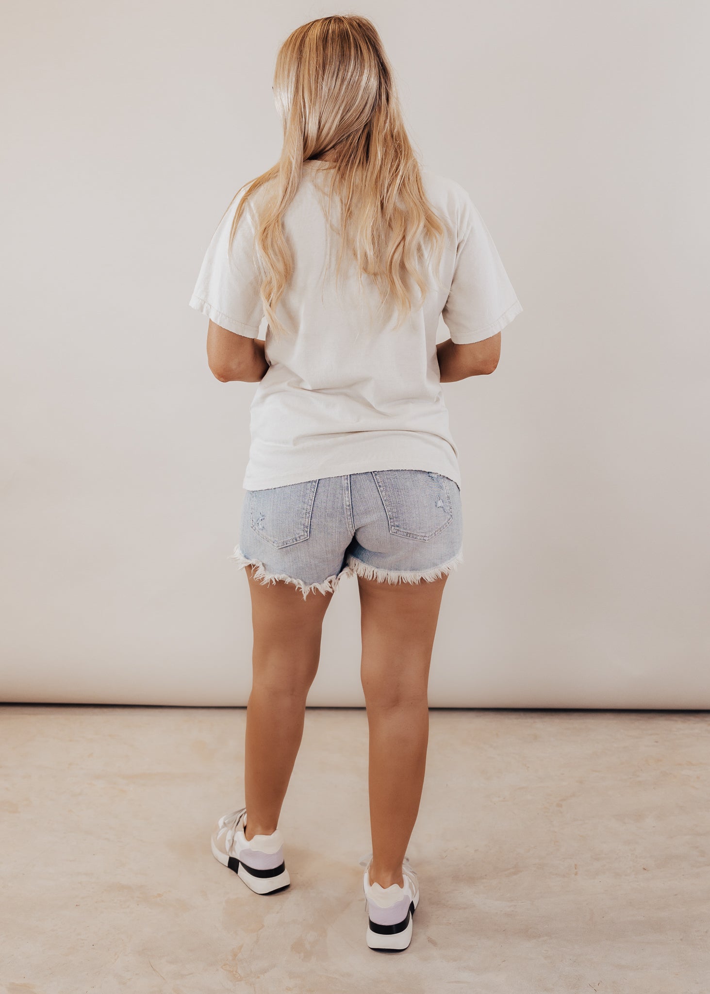 Distressed collar, end of sleeves and on bottom of shirt.
