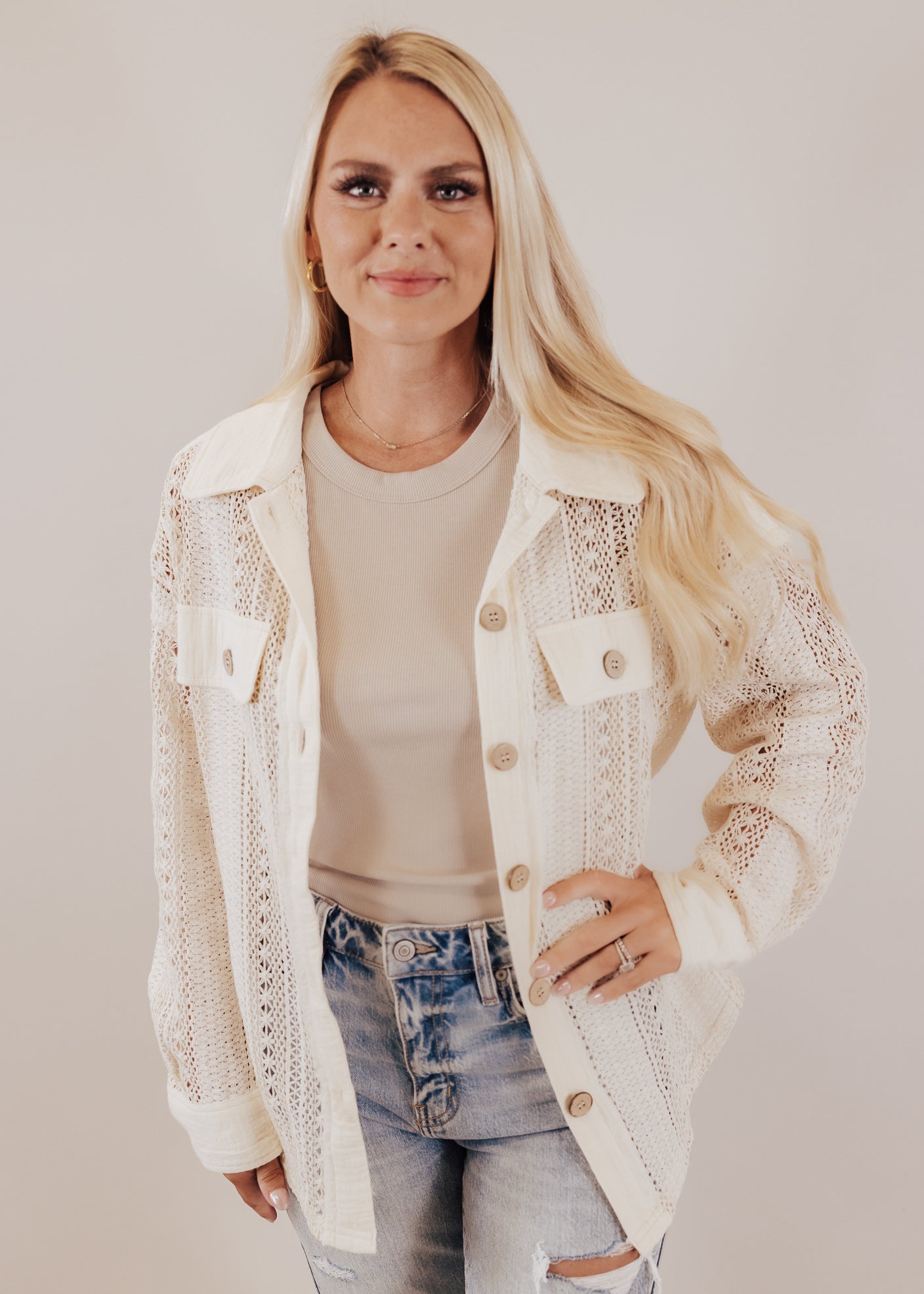 Crochet Button Down (S-3X) *NATURAL